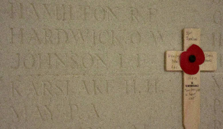 His records have not survived the blitz, and his age is not recorded on the Commonwealth War Graves Commission database, but he was just short of 21 years old when he died, on the threshold of what in those days was regarded as adult life. Instead his name is commemorated on the Arras Memorial in the Faubourg d’Amiens Cemetery, on Bay 4.