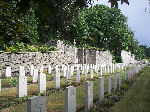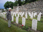 Somewhere within these numbers Sgt. Medlock was included, perhaps wounded, perhaps gassed, and with so many men to care for the pressure on the staff must have been enormous. Every man that could possibly stand the journey back to England was dispatched as soon as possible on outgoing trains, while the severely wounded or gassed together with those on the point of death had to be cared for as best as possible. The hospital records in their War Diary make no mention of the numbers or names of men who died, but for those who did not survive a burial ground was found just outside Versailles, in the suberb of Les Gonards, a mere 15 minutes walk from the city centre and the Palace. Here Sgt. John Medlock was buried. This vast typically French 19th Century cemetery, complete with its many huge monumental tombs for the wealthy and the smaller graves of lesser folk was extended at its perimeter to allow for the burials of those who died of their wounds, gas poisoning or sickness in the No.4 General Hospital. There are just over 150 graves, all identified. It is a beautiful place, five long rows of graves stretched bneath a high bank, the Great Cross overshadowing them. There was no room for a Stone of Sacrifice. As the ground beyond the British cemetery slopes upward to the right, there is a French cemetery of 1914-15 and beyond that a French Air Force cemetery, a North African cemetery and at the top German graves of 1944 resulting from the battle for Paris. The grave of Sgt. Medlock was visited in the summer of 2009, and a tribute was laid to the sacrifice he made and in remembrance of the events of that terrible year of 1915.