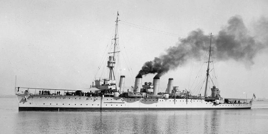 On 2 September 1912, James was transferred to HMS Blanche for a month, then returning to the Temeraire. The Blanche was a scout cruiser designed to operate with destroyers but was not really fast enough. Back on the Temeraire James continued his training and took his examinations, being promoted to Acting Sub Lieutenant on 15 May 1913. On 6 February 1914, James was assigned to HMS Chatham in the Mediterranean where she participated in the pursuit of the German ships Goeben and Breslau. HMS Chatham was a light cruiser launched on 9 November 1911, with a speed of 25.5 knots and main armament of eight 6in guns and a compliment of around 435. In March, James was promoted to Sub Lieutenant. Later that year she was sent to the Red Sea, and in September was sent together with HMS Dartmouth and HMS Weymouth to find and destroy the SMS Königsberg, which had been sinking British merchant ships off the coast of Somalia. By the time the British ships arrived in the vicinity, the Königsberg had again taken refuge up the river Ragifi because of serious engine failure; a common problem with this class of ships which were being recalled to Germany for replacement. When the Chatham arrived off the coast at the end of September, it was discovered that lookout positions had been established, but the location of the Königsberg was soon discovered. With the Königsberg was the collier Somali which the Chatham destroyed on 1st November when the Königsberg moved further upstream. The British did not had detailed maps of the river so were not inclined to follow with their larger vessels, so decided to block the river by sinking the their collier Newbridge (see photo below). At dawn on the 11th November, the Newbridge had been discovered by the German shore defences who started to fire at it. With the Newbridge was the armed steamer Duplex to rescue the crew, a steam picket ship armed with two 14 inch torpedoes to sink Newbridge if her scuttling charges failed and three cutters armed with machine guns and rifles as escort.