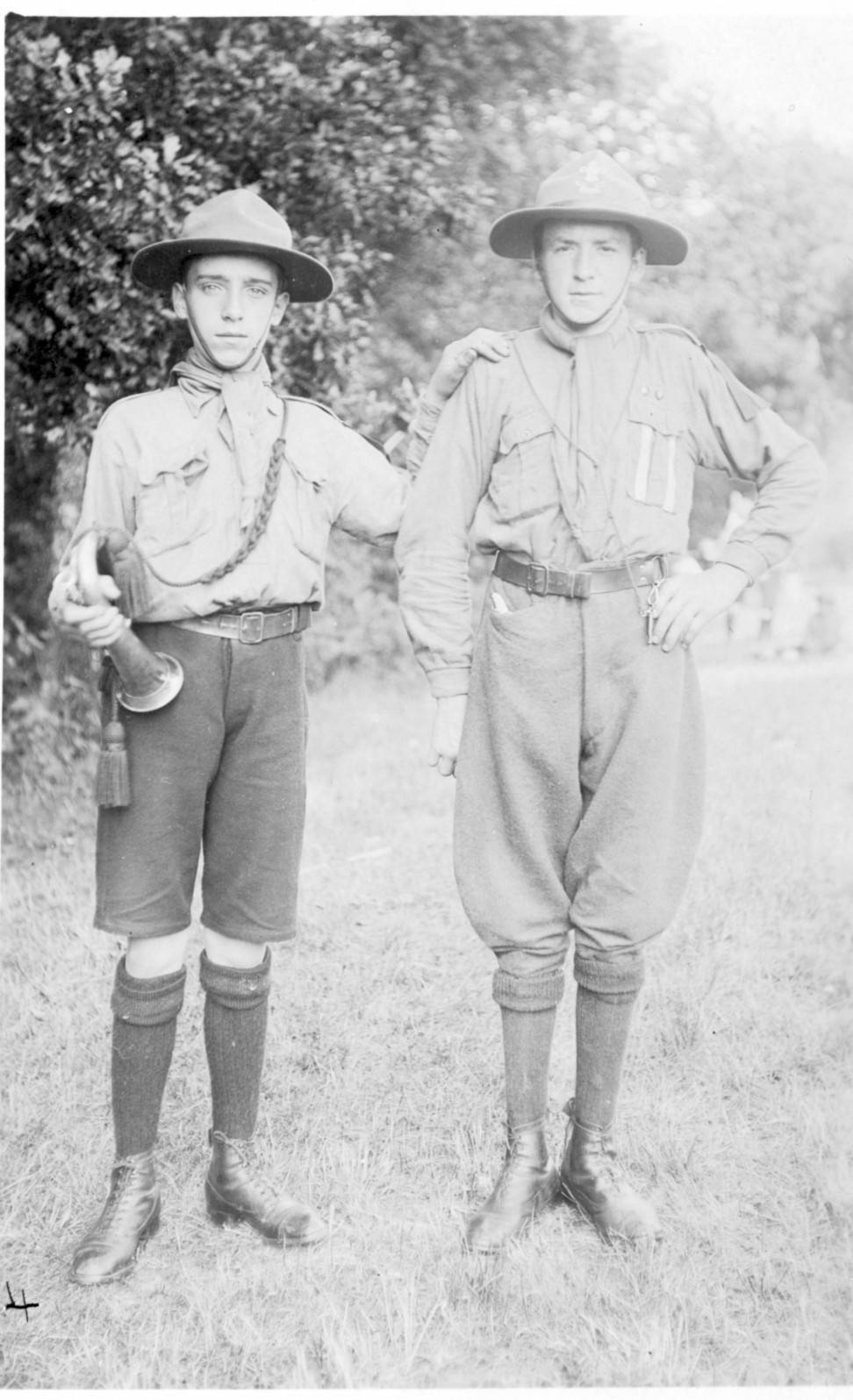 Born in 1896, Henry Mitchell, known always as Harry, was the youngest son of John Mitchell, a shoeing smith living on the Exeter Road, and his wife Grace. The family consisted of six boys and one girl, and five of the sons served in the war, a very proud record for the family and for the contribution the family made to the war. There were no less than five Mitchell families in the village, the details listed on this site, and John Mitchell's children were cousins to the four children of William Mitchell, a carpenter, and his wife Emma, living on the corner of Park Place, just by Court Barton. William and Emma had three girls and Albert W. : Harry and Albert were of similar age and obviously good friends. They had both joined the Winkleigh Troop of Boy Scouts founded in Winkleigh in 1913 by the curate, Rev. Ottley, and both boys became trumpeters for the troop. Two photographs that have survived showed the boys at that time The Chumleigh Deanery magazine for May 1913 reported: