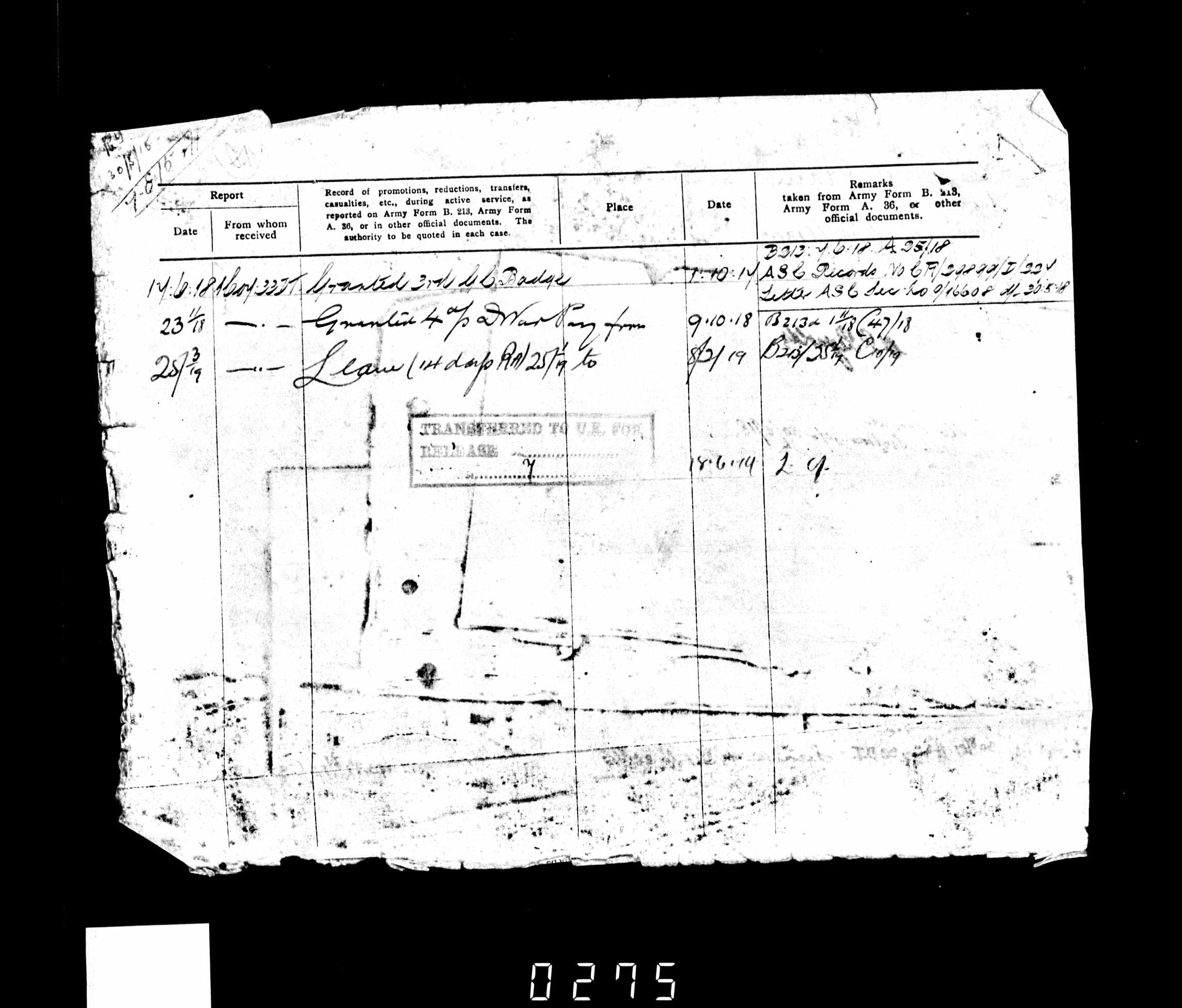 George was then fully involved in the 33rd Division’s activities until the end of the war. Preparations for the July 1st opening of the Battle of the Somme must have taken a heavy toll of the supply columns for the heavy howitzers, but at least George would have been well behind the front lines on the opening day and in subsequent weeks. On 31st July George was admitted into hospital for four weeks suffering from influenza, rejoining 167 Brigade on 31st August. The 167th Brigade was broken up on 12th September, and George returned to the 33rd Divisional supply train. He was certainly serving in the headquarters No. 1 Company when he was granted 10 days leave from 15th to 25th August 1917. George remained with the Divisional headquarters transport, as recorded by his next leave, 14 days from 4th to 18th March 1918. On 17th June 1918 George was still serving with 1st HQ Company of the 33rd Divisional train when he was awarded the 3rd Class badge of the ASC, presumably for his long service. On 23rd November 1918 he was granted 4 years war pay (as an enlisted reservist) The war now over, he was given 14 days leave from 25th March 1919 to 8th February, and finally returned on 18th June to the UK for demobilisation, just before the final dissolution of the Division on 30th June.