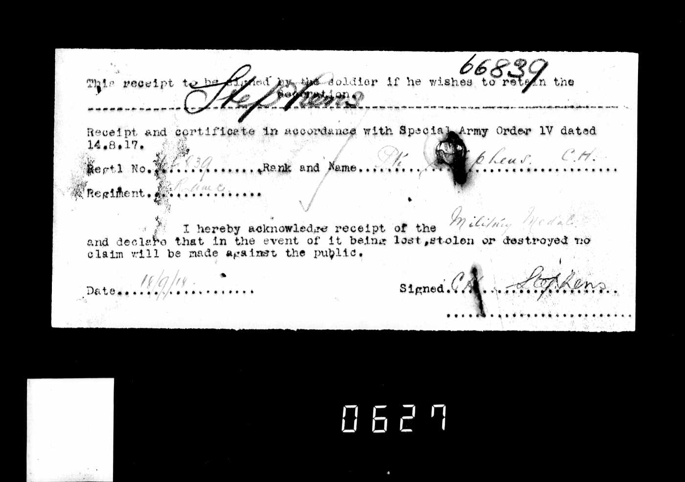 ‘For excellent work and volunteering on several occasions when men were called for to carry more wounded, the following deserve mention….’ and among these names is that of Private Stephens C.H.