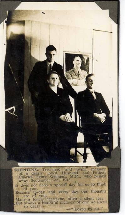 The information about his war record first came to us via a relative, Roger Stephens, living in Adelaide, Australia for whom we are very grateful. We must also thank Roger for the family photograph.