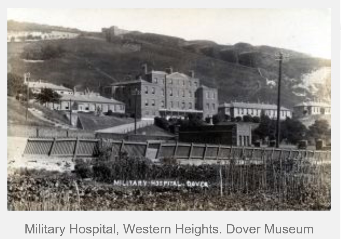 There were two main sites of barracks on the Western Heights. The first date from 1804 and were known as the Grand Shaft Barracks, being located at the top of the Grand Shaft Staircase. They provided accommodation for 59 Officers, 1,300 NCOs and privates and eight horses. These barracks were noted for their light and airy situation, which of course would have been an ideal environment for a hospital caring for those suffering from lung damage. The Southern Access to the military hospital, with beds for 180 patients, was via the South Military Road and the Archcliffe Gate, a substantial brick gate with an external drawbridge which was demolished to foundation level in 1963.