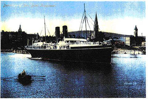 ‘Meanwhile, the lifeboat known as ‘Big Bertha’ drifted around the stern of the ‘Leinster’. Assistant Purser Bill Sweeney saw a group of young British army soldiers sitting on the rail. He screamed at them to jump. But they just sat there. Finally the ship went down, carrying the soldiers with it.’