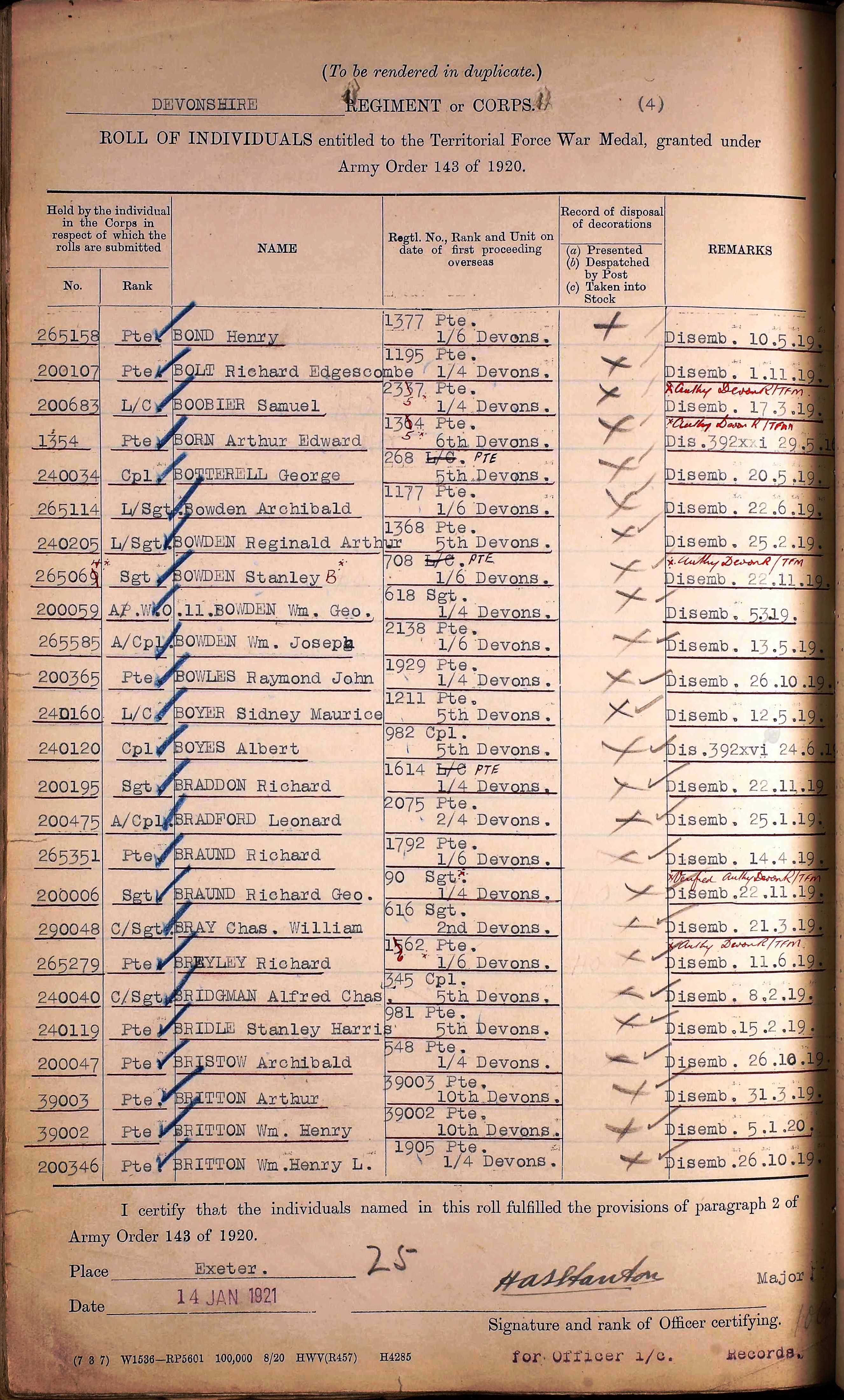 With the war now building into its most intensive phase Arthur was free from further service, and no doubt returned to his home in Wembworthy and his friends in Winkleigh.