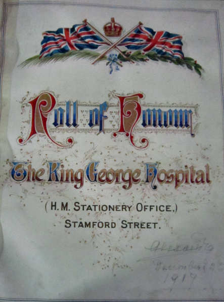 Erected by the nursing staff in honour of the patients who died in the King George’s Hospital, H.M. Stationary Office, Stamford Street, used as a military hospital during the war.