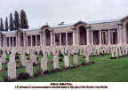 The Arras Memorial is in the Faubourg-d’Amiens Cemetery, which is in the Boulevard du General de Gaulle in the western part of the town of Arras. The French handed over Arras to Commonwealth forces in the spring of 1916 and the system of tunnels upon which the town is built were used and developed in preparation for the major offensive planned for April 1917. The Commonwealth section of the cemetery was begun in March 1916, behind the French military cemetery, and it continued to be used by field ambulances and fighting units until November 1918. The Memorial commemorates almost 35,000 servicemen from the United Kingdom, South Africa and New Zealand who died in the Arras sector between the spring of 1916 and 7 August 1918, the eve of the Advance to Victory, and have no known grave. Both cemetery and Memorial (looking something like a Greek temple) were designed by Sir Edwin Lutyens, with sculpture by Sir William Reid Dick. Besides the memorial there are in the cemetery no less than 34,757 known graves.