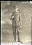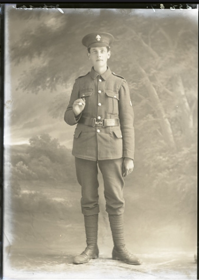 In May 2021 we were very kindly contacted by Jonathan Bracken, living in Epsom, who has been working on an archive of some 10,000 plate glass photographs taken by David Knights-Whittome, a photographer living in Sutton. The photos were found in the cellar of his shop premises, 100 years after the business had closed and Mr. Knights-Whittome had moved away. A full account of the discovery is added to this site, together with a photo of Lawrence Johnson taken, as were with many others, of the Pals Brigade of the Royal Fusiliers. Here we see a newly enlisted Lawrence, posing in his uniform for the benefit of his family, a very young man ready to serve his country.
