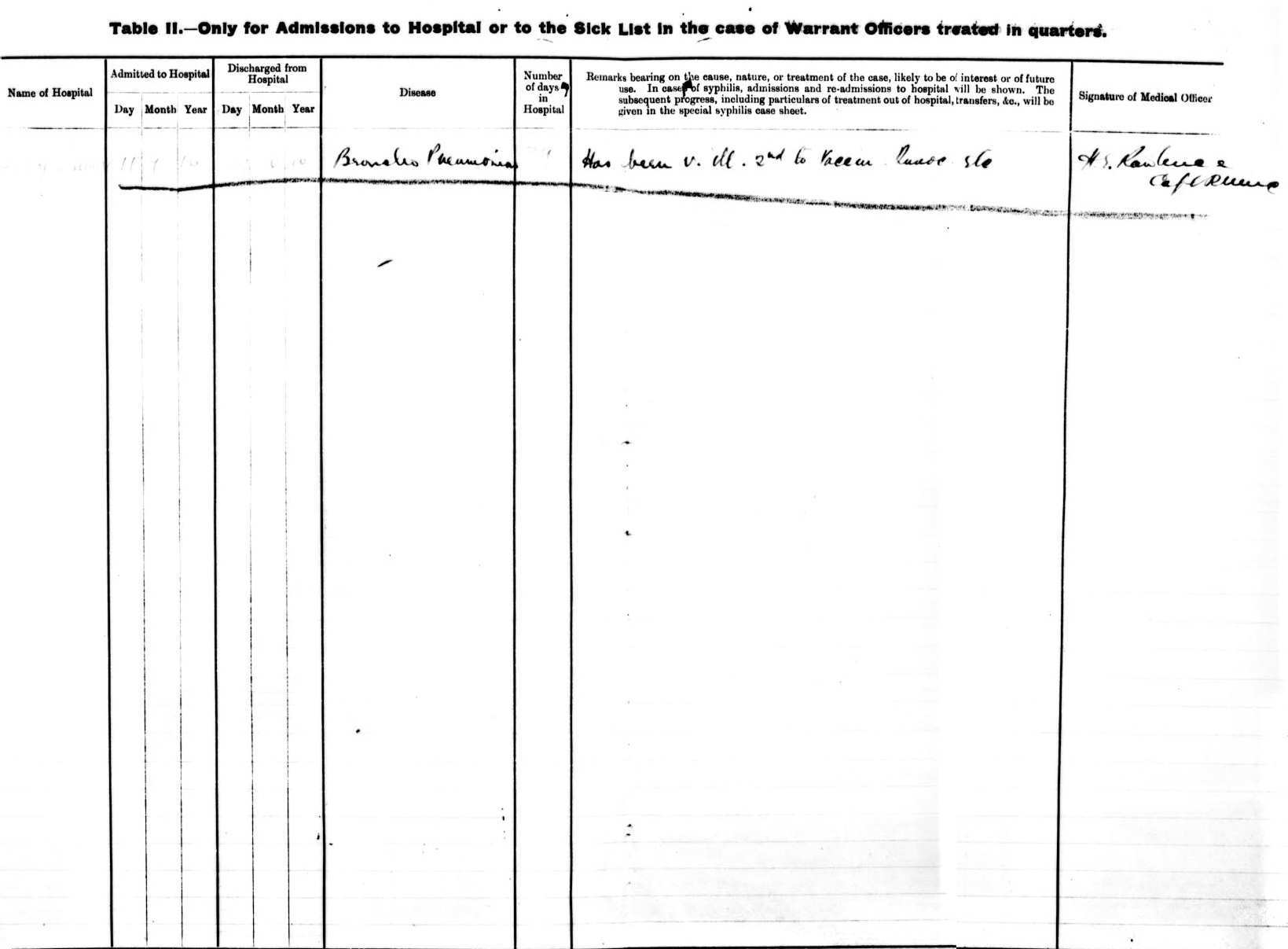 The hospital record (Section 3), describes his condition as bronchial pneumonia, and states that he ‘has been very ill’.